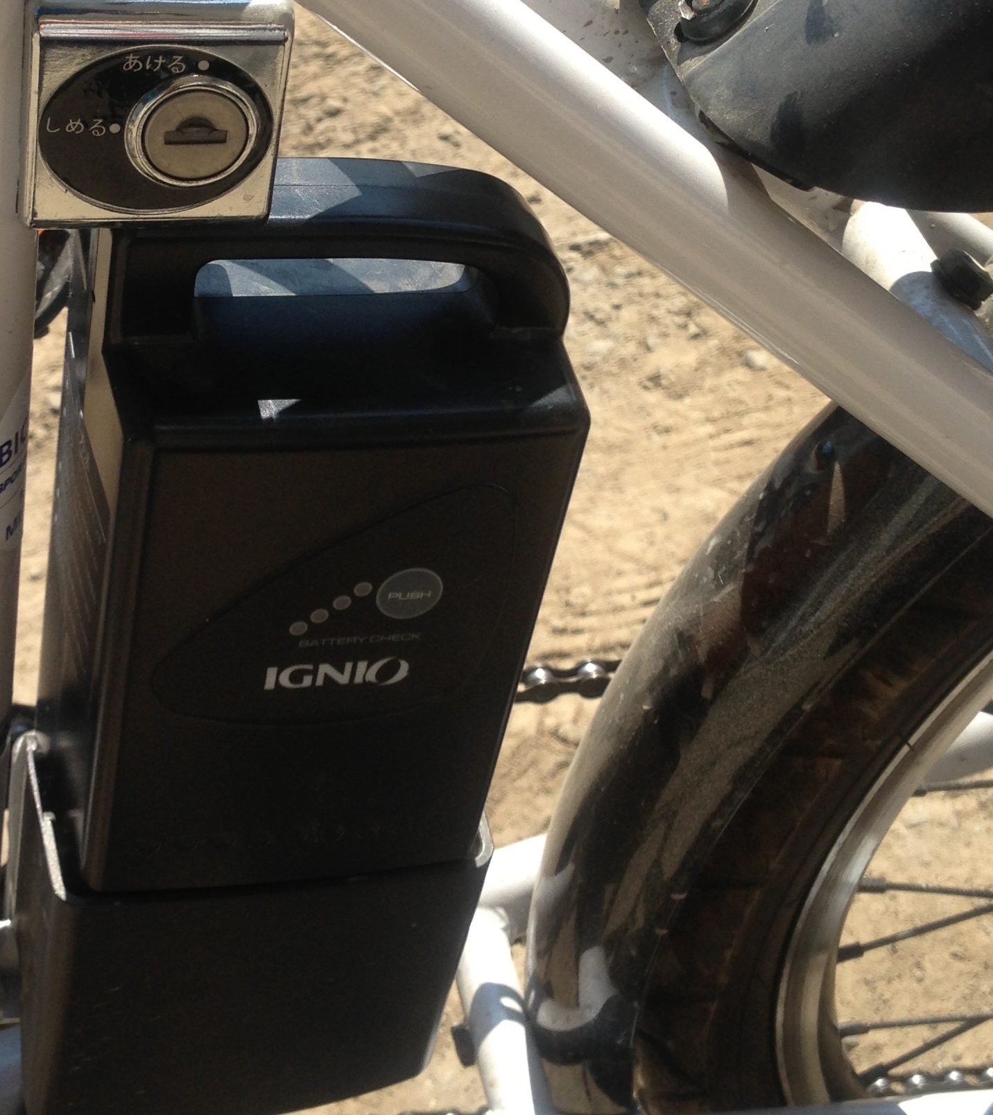 イグニオの電動自転車はバッテリーには鍵があるけど、